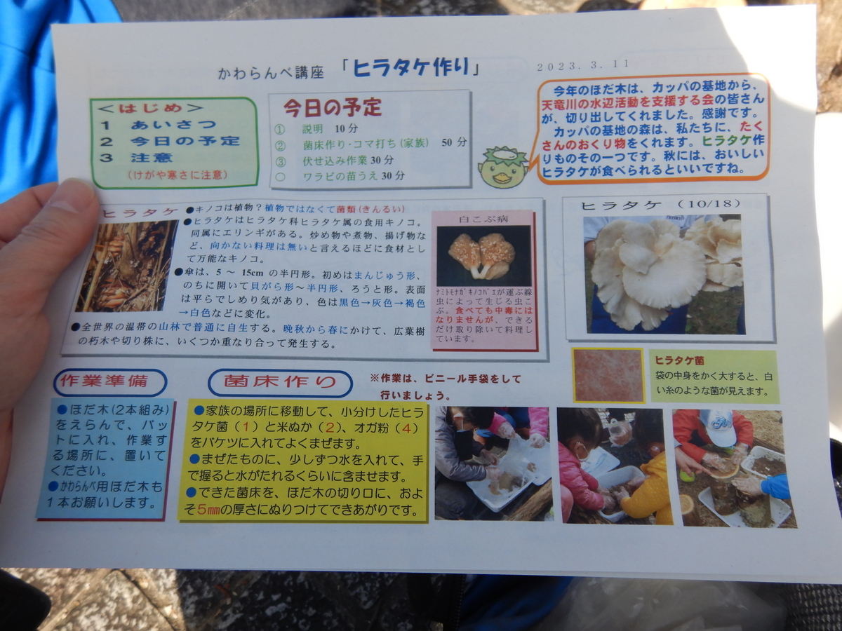 今日は、「ヒラタケ作り」を学習します。
