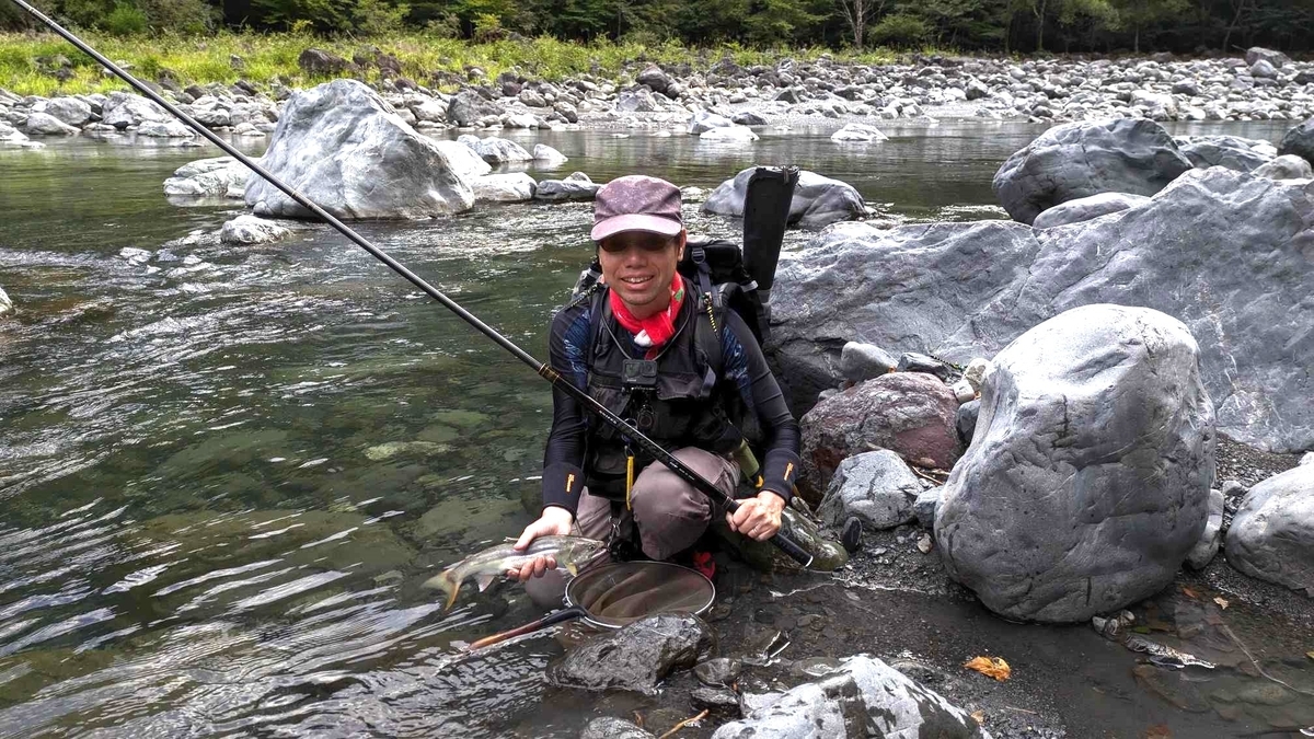 師匠オススメのポイントで、なんとか9寸のノボリアマゴをヒットさせました。