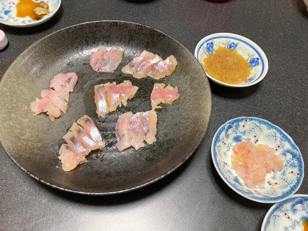 翌日の夕飯に、こども達の大好きなアマゴの刺身とイクラを食べました。